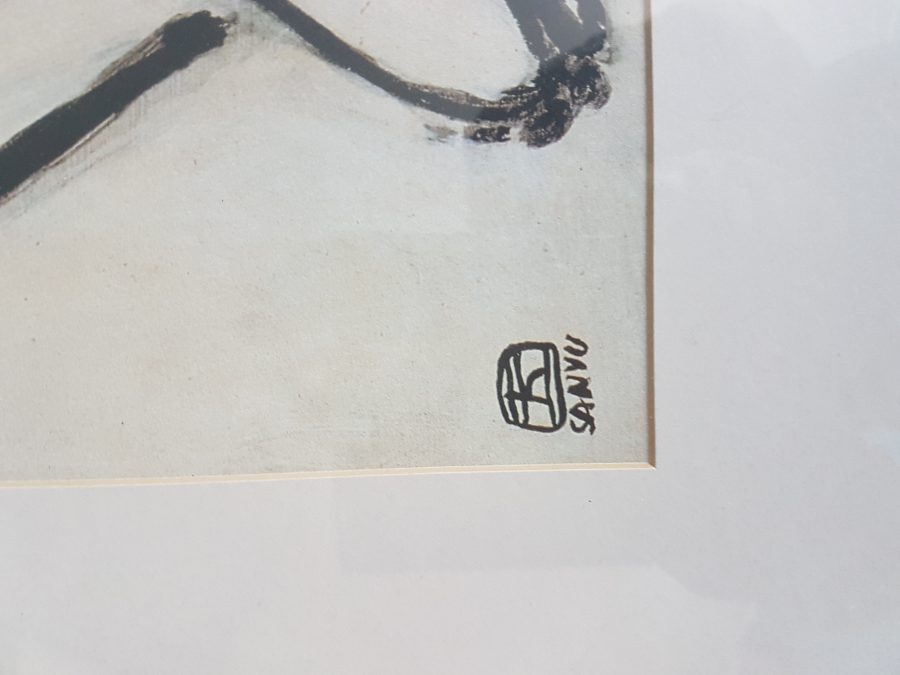 OEUVRE DE SANYU DE DIMENSION 120X78 SOUS VERRE ACHETE EN VIDE GRENIER JE NE SAIS PAS SI CELA A DE LA VALEUR