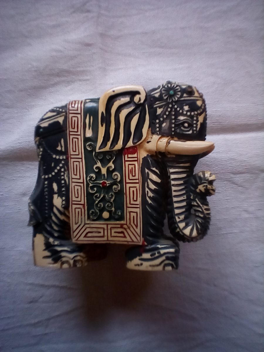 éléphant en ivoire ( 2 picees ) hauteur 0.13 largeur 0.13 sur 0.6, incrusté de pierres