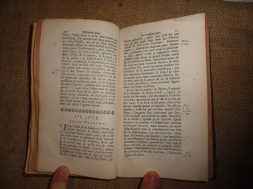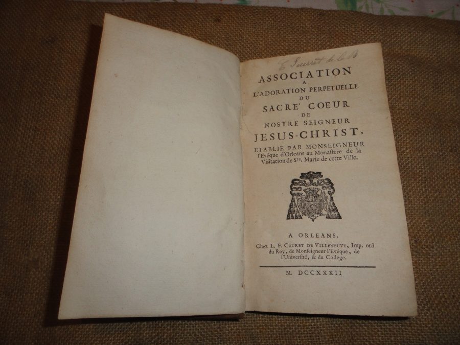 ouvrage de l’évêque d’Orléans,la 1er page est un peut décollée et les feuilles légèrement jaunis 1 tache sur la couverture extérieure.
