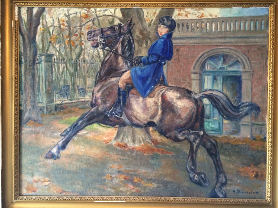 Tableau d’une cavalière sur 1m15 sur 87 cm en bon état