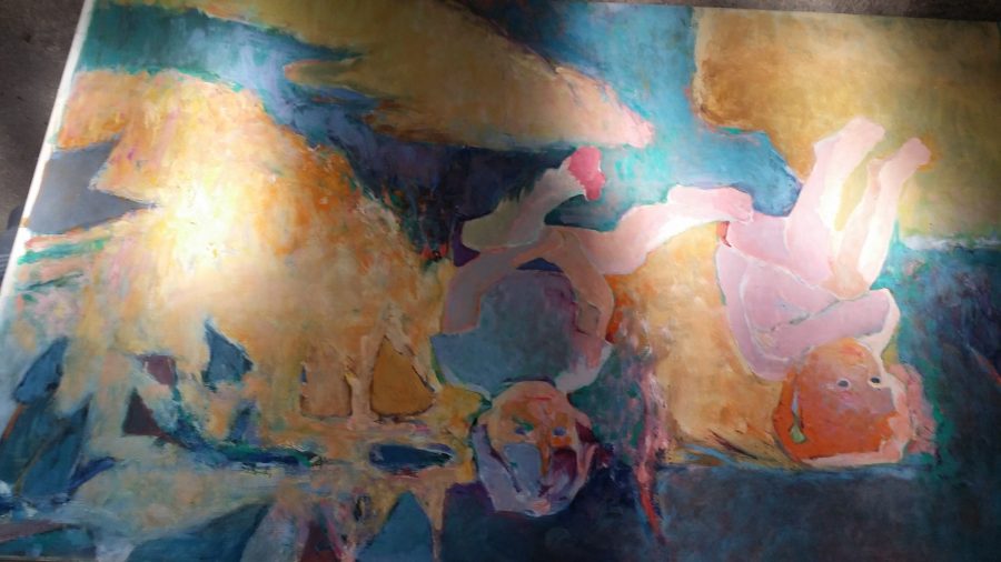Tableau de 1.45 X 0.90 représentant deux enfants assis.