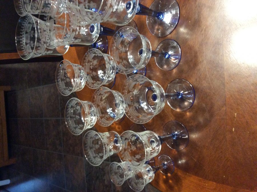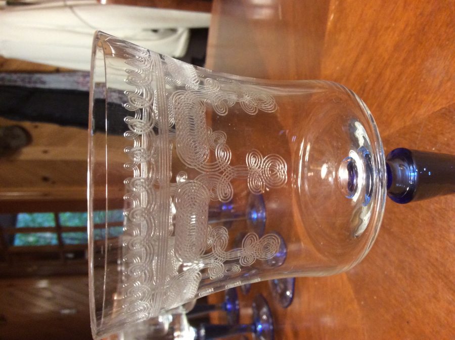 Verrerie avec motifs avec base bleue, de ma grand-mère paternelle, 100 ans.